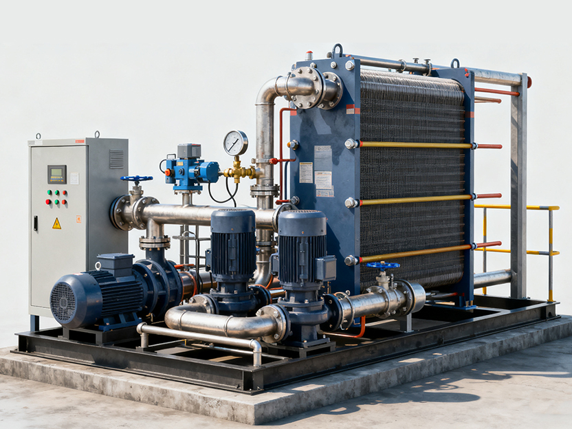 换热机组采用效率高的热交换技术和智能化控制系统,能够精确地控制流体温度,提高能源利用率,降低能耗。效率高的热交换器设计,如板式换热器、管式换热器、螺旋板式换热器等,通过增加换热面积、改善流体流动状况等方式,显著提高了热能传递的效率。